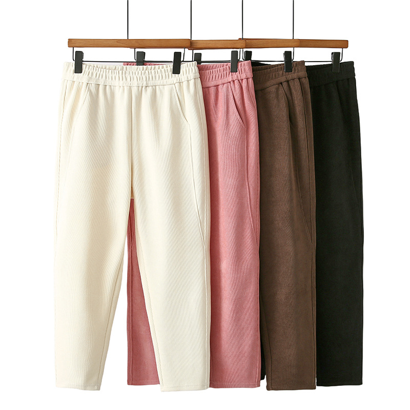 大きいサイズの女性のズボンの欧綿の絨毛のカジュアルなズボンの高腰はやせていることができます。