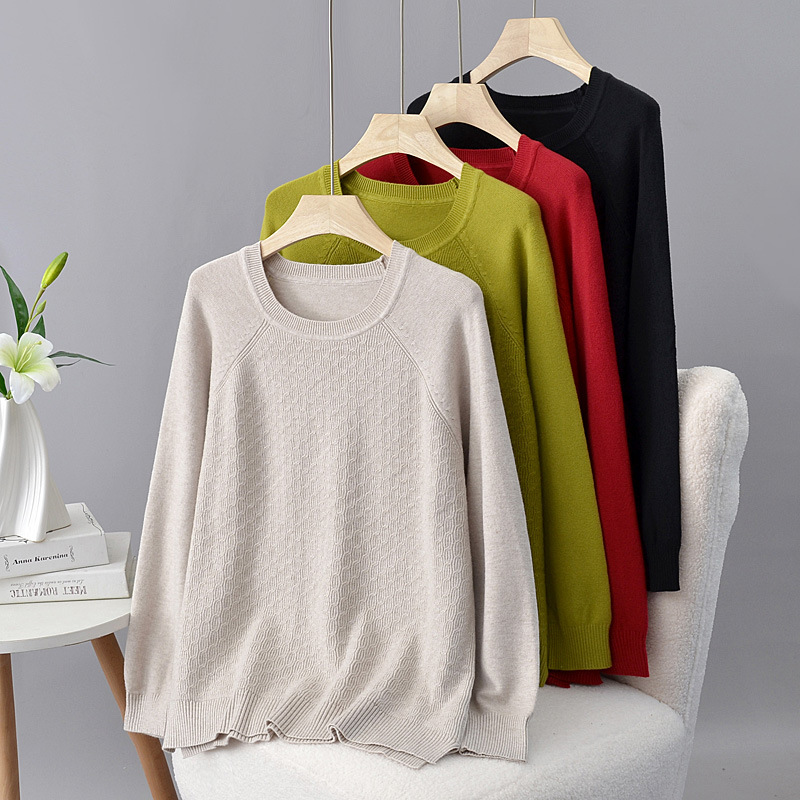 2024秋のセーターのフォークの大きいサイズの婦人服のジャカードの長袖の弾力性はやせています。