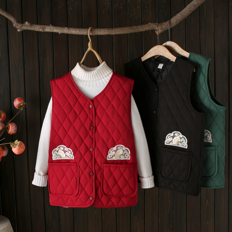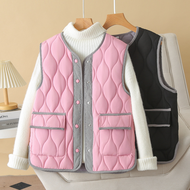 2024秋冬綿馬挟みの大きいサイズの女装は色の襟の丸首の馬甲にぶつかってやせている200斤の太った妹のベスト5205を現します。
