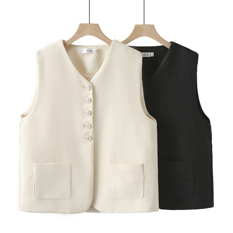 2024秋の粗紡馬挟み大サイズ女装vネック気質ベスト気質太った妹200斤の馬甲が痩せている2432