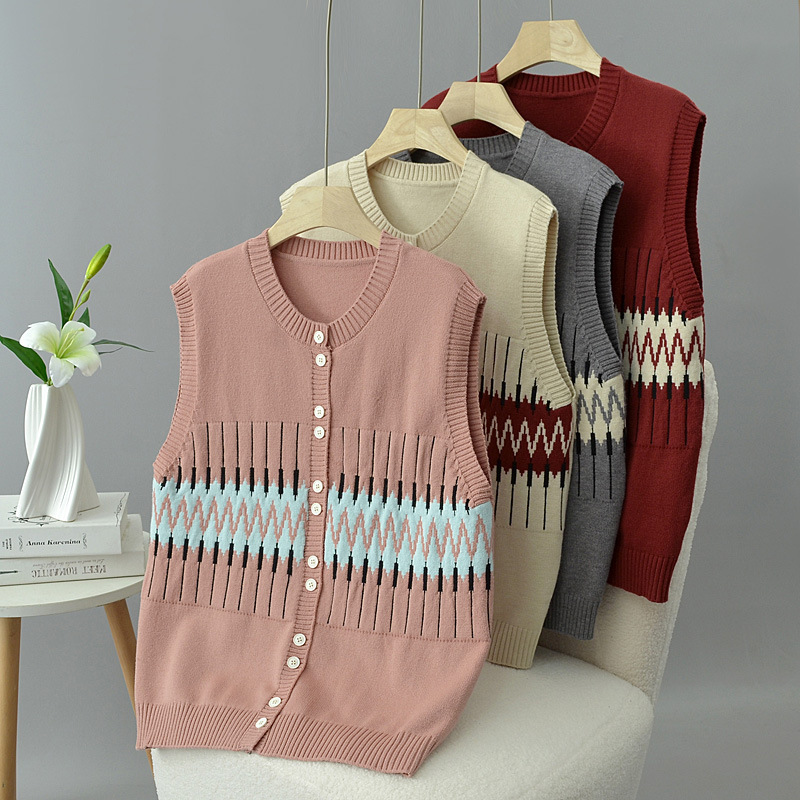 2024秋冬ジャカードニット馬挟み女子大サイズ200斤丸襟痩せカーディガンベスト太った妹馬甲2263