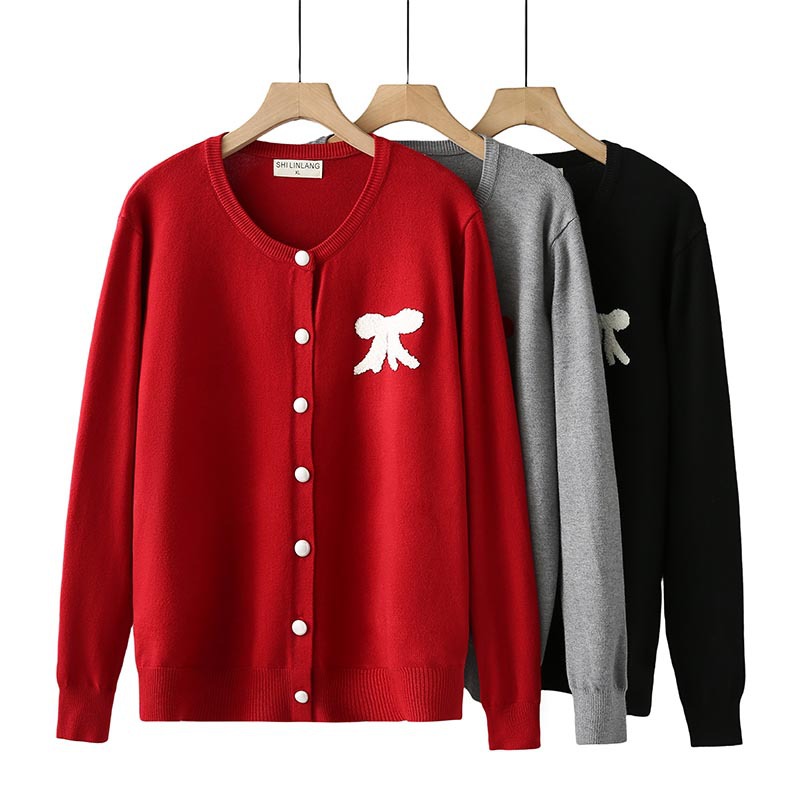 2024秋の大きいサイズのセーターのコートの蝶結びの刺繍の長袖のカーディガンの丸首の太った妹の200斤のニットのシャツの2431