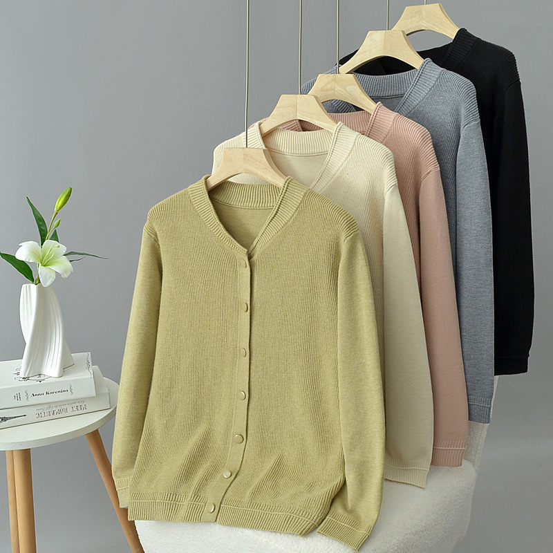 大きいサイズのセーターのコートの婦人服の2024秋の長袖のニットのカーディガンの弾力はやせています。