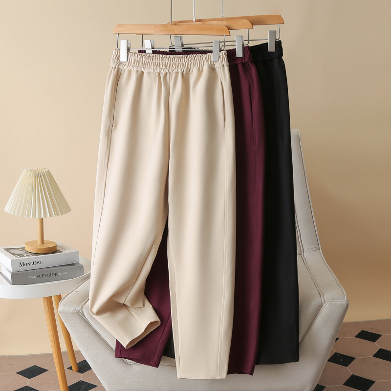 大きいサイズのハーレムズボンの女性のズボンの2024秋の高弾力のズボンの200斤はやせている9分のズボンの水洗いの綿のカジュアルなズボンの2656を現します。