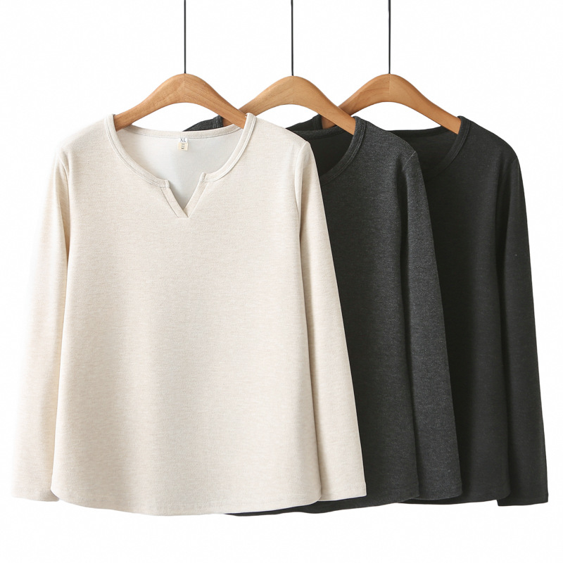 2024秋の底のシャツの大きいサイズの婦人服の簡単なvネックの長袖の上着の200斤の太っているMMの百合のtシャツはやせている2412を現します。