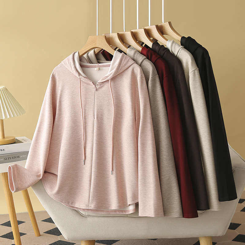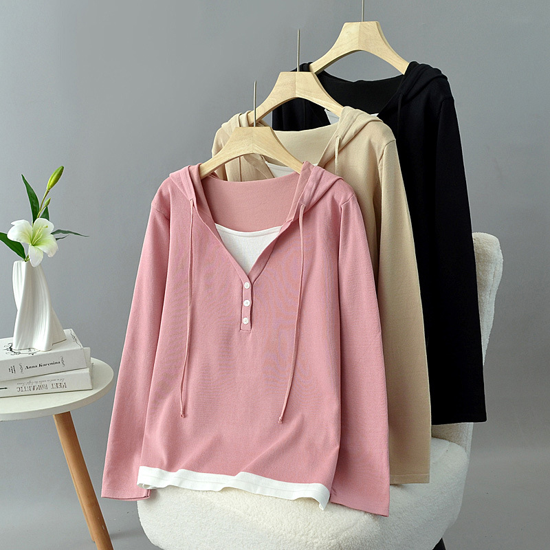 2024秋の大きいサイズのニットの偽の2枚の帽子の上着の女性は色の200斤の太った妹の長袖の帽子のセーターの2265にぶつかります。