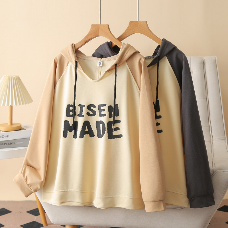 太った妹のガーディアンと帽子のカジュアルフード200斤の色合わせ長袖文字2024秋の大きいサイズの女性の上着の潮2688