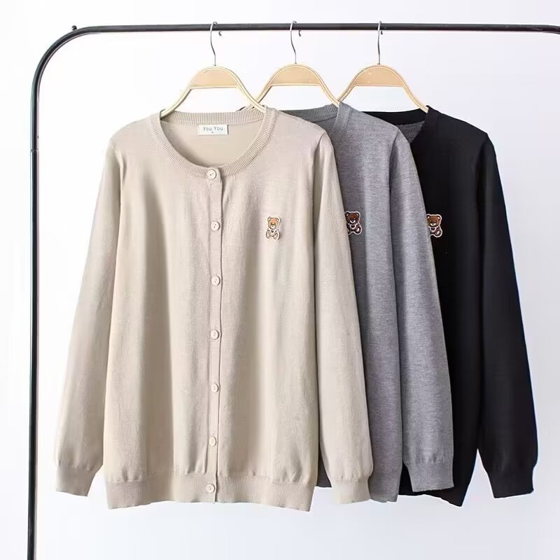 2024秋の大きいサイズのニットのシルクの綿の婦人服の熊のカーディガンの200斤の太っているMMの弾力のコートはやせている1176を現します。
