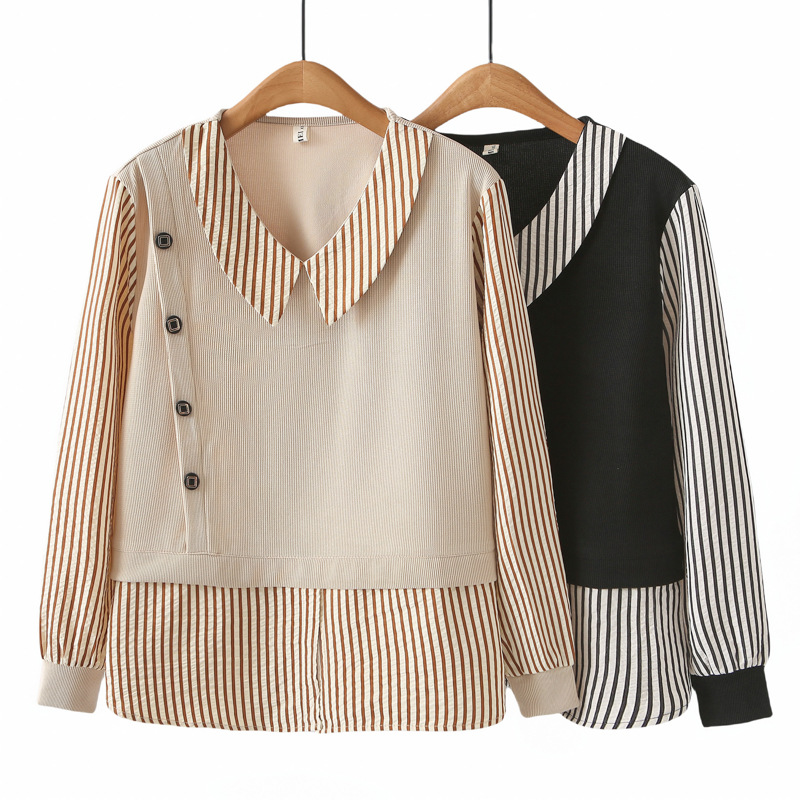 大きいサイズの婦人服の偽の2つの上着の小さい大衆の子供のシャツの長袖の2024秋のファッションのストライプのシャツの200斤の太ったMM050