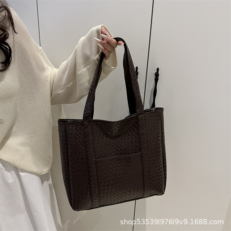 2025 新韓国スタイルシンプルでファッショナブルな無地トート脇の下ショルダーバッグレトロ織り模様大容量カジュアルバッグ