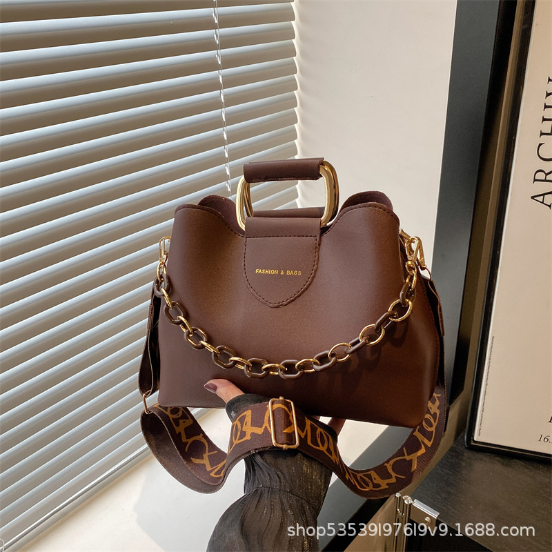 クロスボーダーレディースバッグ 2025 新しいトレンディなバケットバッグ韓国スタイルのファッションシンプルなショルダーバッグ女性のチェーン通勤ハンドバッグ