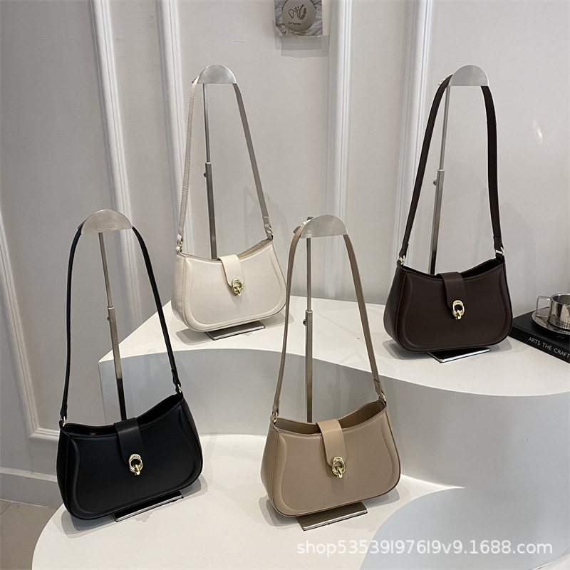 フレンチバッグ レディース 20242025 新しいファッション レトロ 多用途 シングルショルダー バゲット 脇 黒 ブラウン コーヒー色
