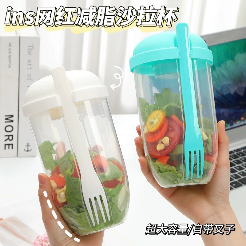 ネット赤サラダカップフォーク付き蓋付きオフィス学生ダイエットカップ外出携帯軽食朝食カップ