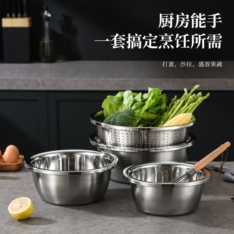 304 ステンレス鋼の洗面器と洗面器、厚みのある水切りバスケット、米洗いふるい、調理用洗面器、水切りバスケット、洗面器卸売