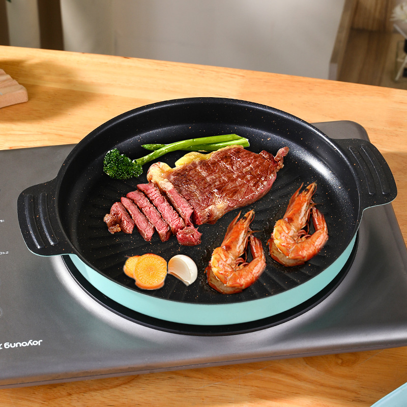 韓国式焼き皿は麦飯石焼き皿のフライパンにくっつかないです。