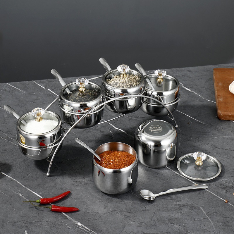 304ステンレス製調味料入れ、キッチン調味料ボックス、家庭用調味料ボックス、唐辛子入れ、密封塩入れ、スプーン付き、卸売