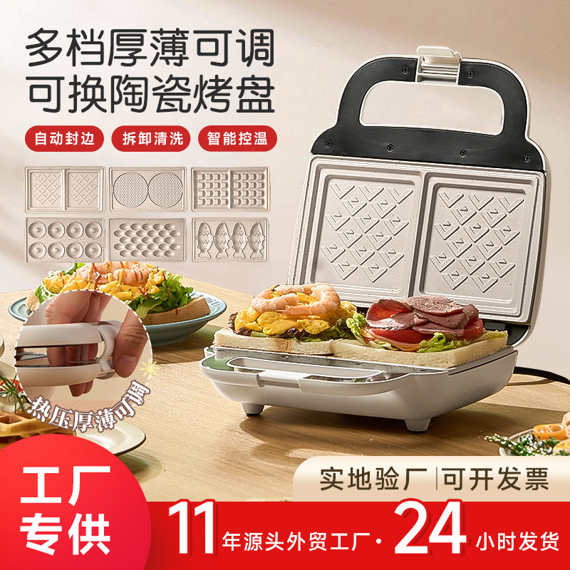 虹魅サンドイッチ朝食機多機能家庭用トースター取り外し可能三合一軽食ワッフル機