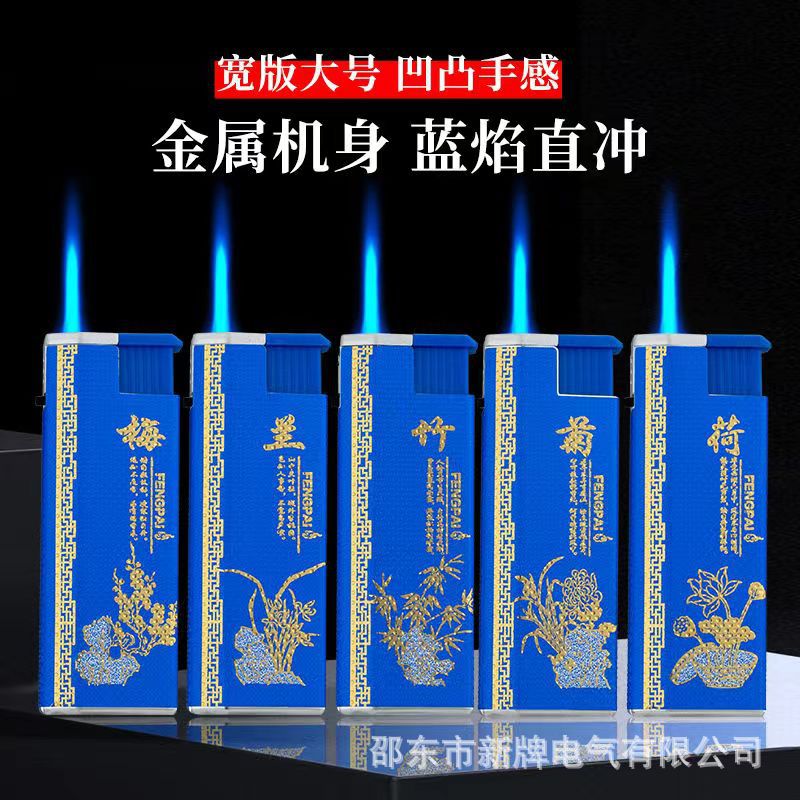新型金属防爆直沖藍炎使い捨てライター防風空気充填国潮梅蘭竹菊卸売り