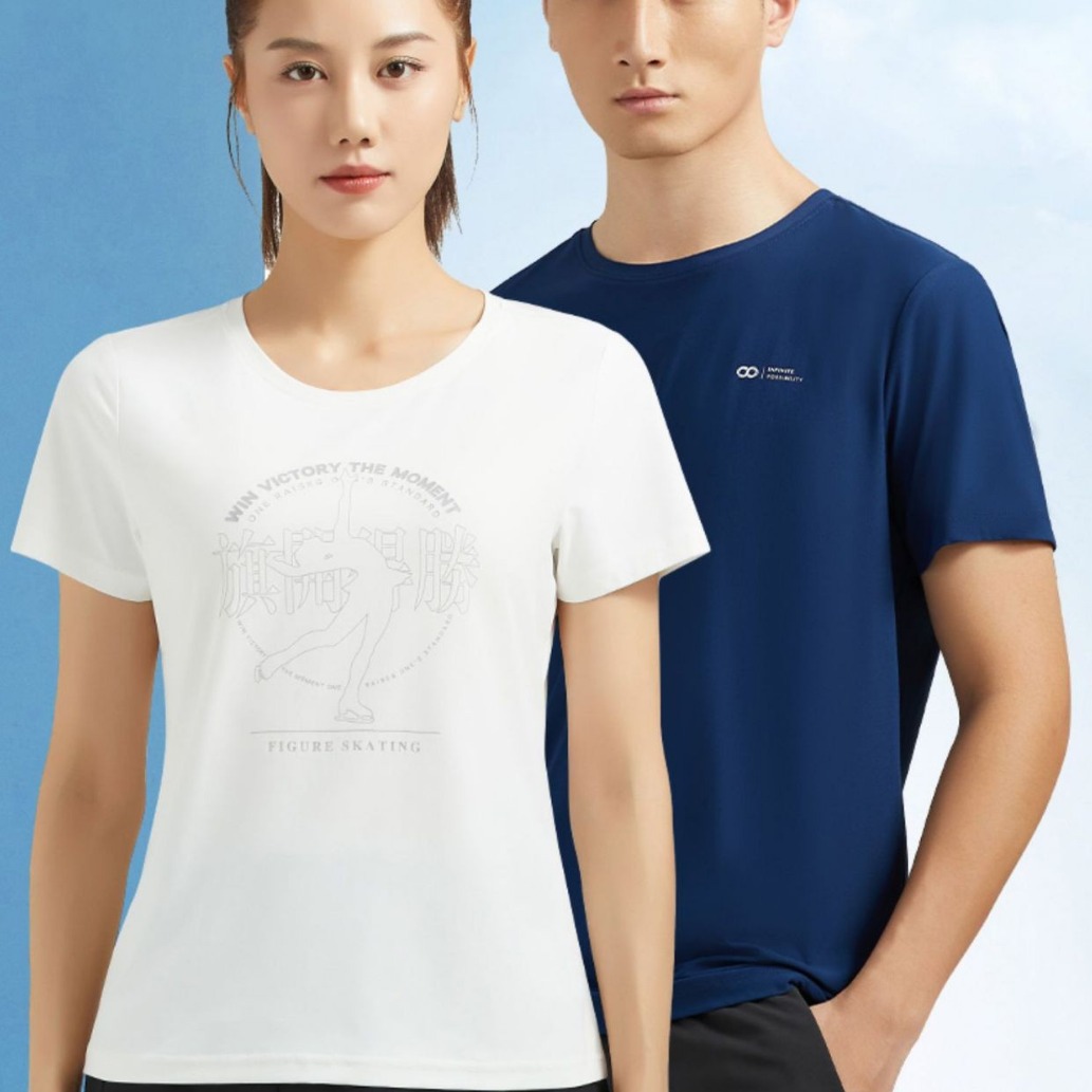 アウトドア男女モデル夏丸首プリントカジュアル吸汗通気性半袖スポーツtシャツ速乾服