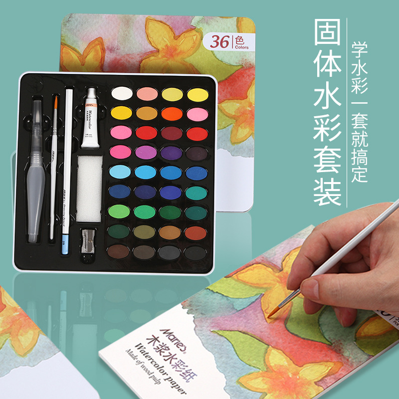 マリ絵の具36色ソリッド水彩セット初心者万年筆水チョーク紙水彩絵の具絵画セット