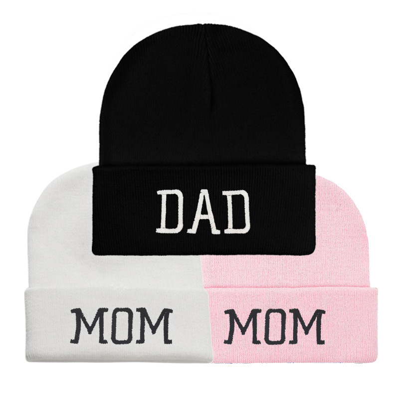 国境を越えた希音TEMU刺繍花MOM DADニット帽百合韓版毛糸帽屋外騎行フード