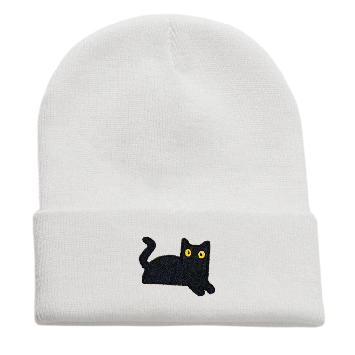 国境を越えたアマゾン黒猫刺繍ニット帽