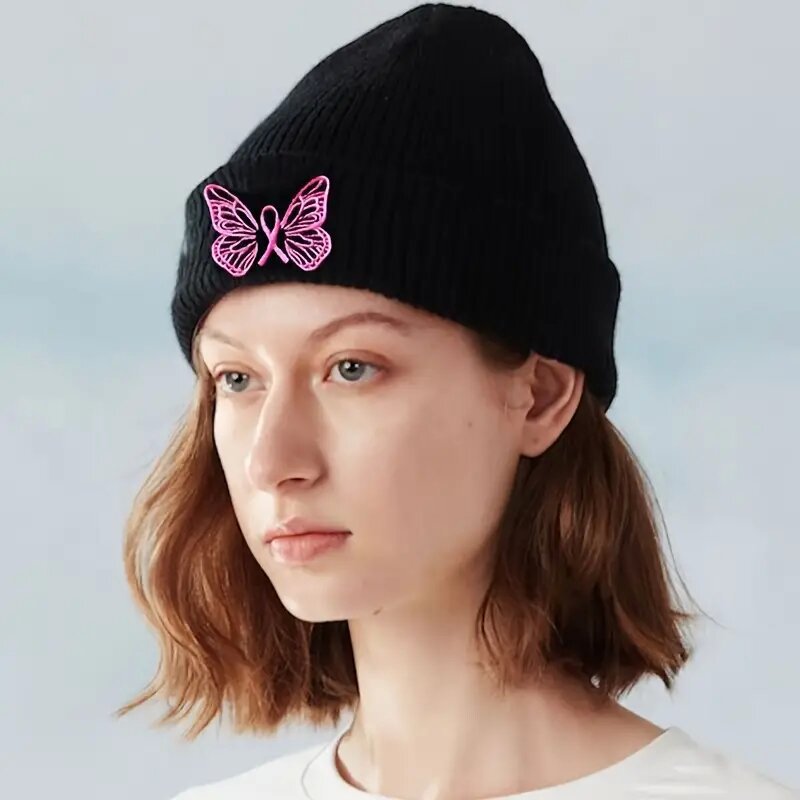 蝶刺繍の花のメリヤスのつばのない小便の帽子は韓国版の男女の保温の毛糸の帽子を合わせます。