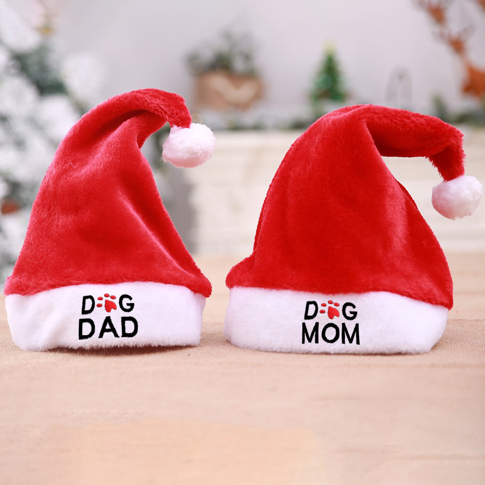 国境を越えた供給工場犬ママ刺繍クリスマス帽子犬パパプラスベルベット厚みのあるぬいぐるみクリスマス装飾帽子
