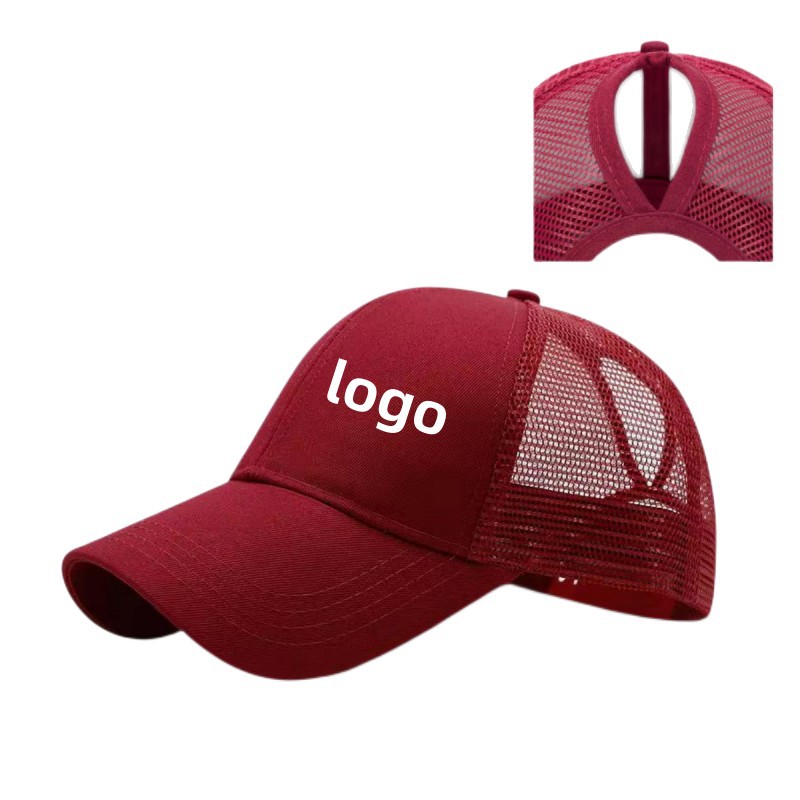 高馬尾小単カスタムロゴ製品刺繍純色綿馬尾帽野球帽通気ネット帽