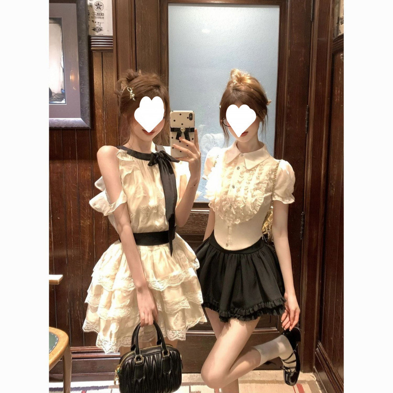 Swan Dream ビッグスカートレトロ饗宴ドレス甘いレースアップレースベビードールドレス女性用