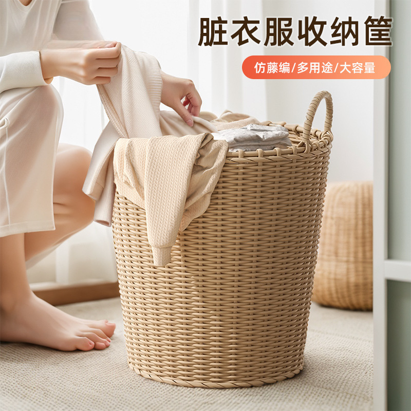 浴室収納バスケット、寮の汚れた衣類バスケット、家庭用高価値汚れた衣類収納バスケット、模造籐の汚れた衣類バスケット、浴室
