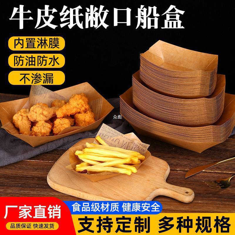 クラフト紙ボートボックス包装箱長方形使い捨て弁当箱フライドチキンステーキバーベキュースナックプレート商業紙プレート