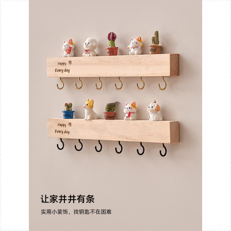 玄関壁掛けキー収納ラック無垢材パンチフリーエントリーウォールフックドアクリエイティブ装飾ラック卸売