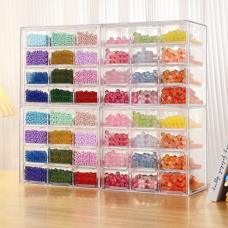 ビーズビーズ手作りビーズ透明手串材料ボックスデスクトップ収納ボックス引き出し式収納整理防塵