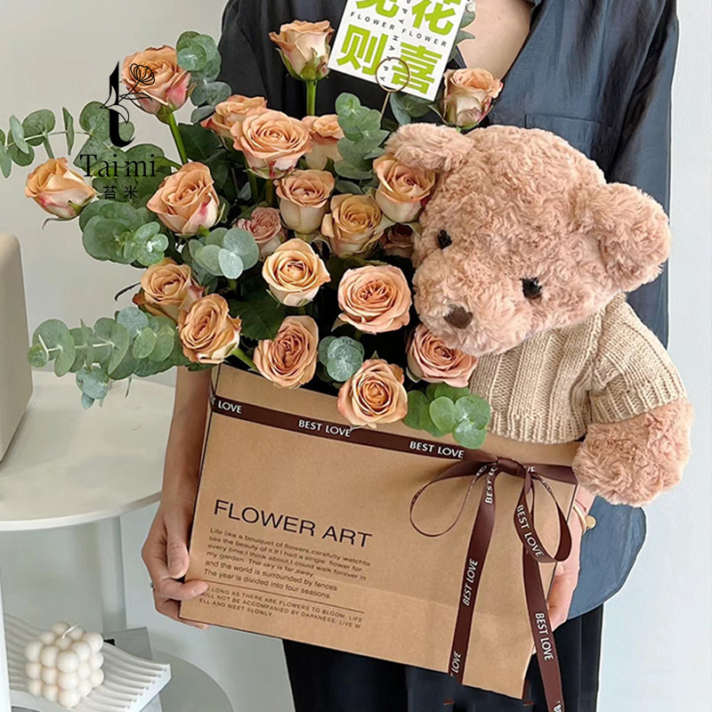 コケの手は熊の花を持って袋を抱きます。
