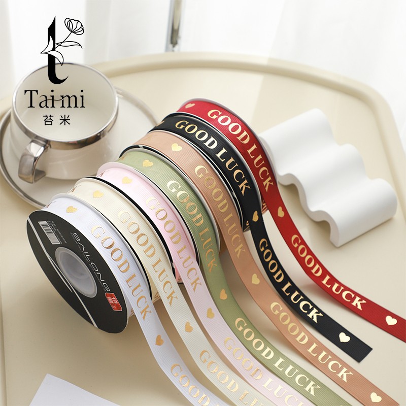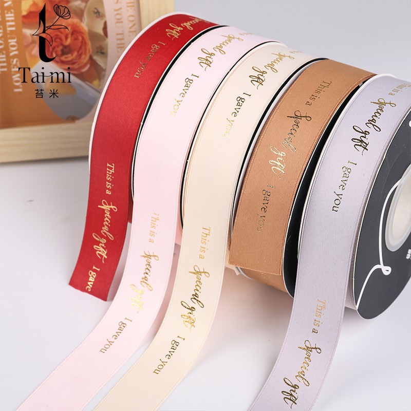 苔米英語箔押しリボンリボンつや消しポリエステル綿リボン花芸ケーキ焙煎リボン手作りdiyリボン