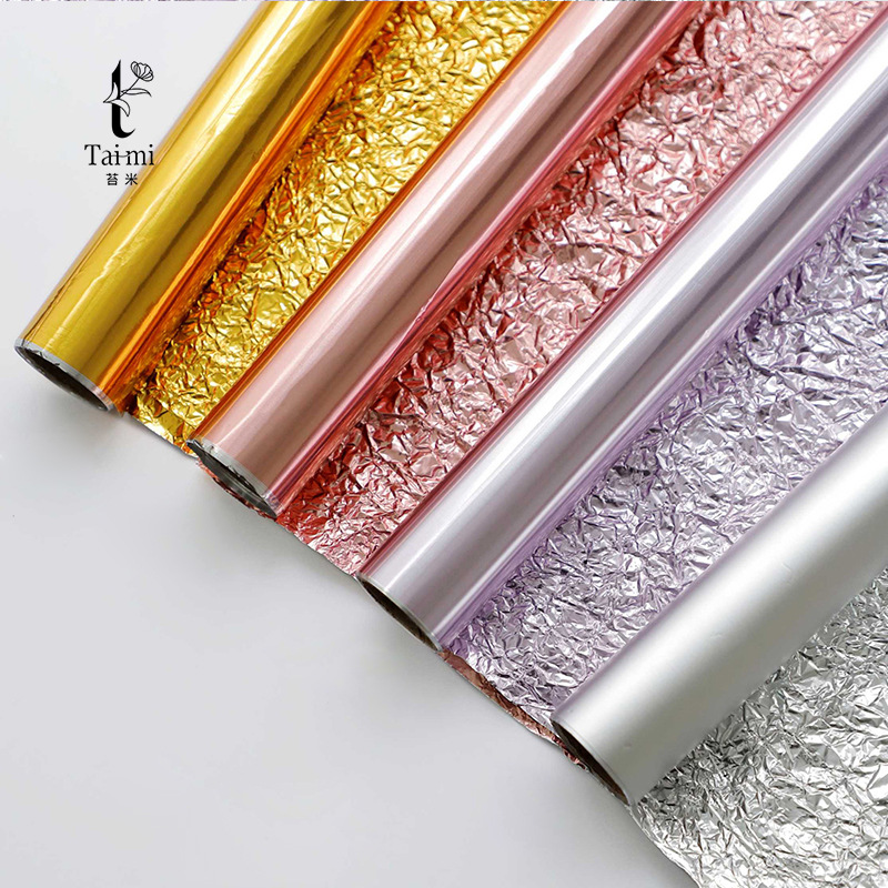 新しい花の包装紙は形の錫箔の花束を詰めて紙を包んで手をもみます。