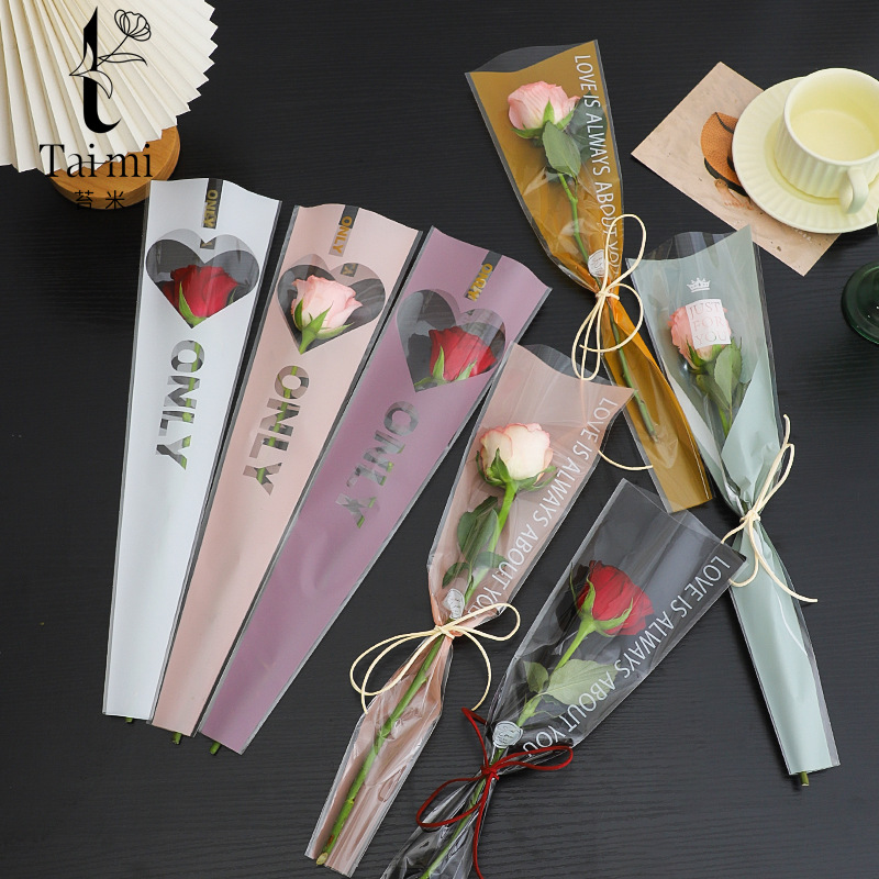 苔米3.8女神節花単枝袋花カーネーション包装透明袋花束包装袋花屋