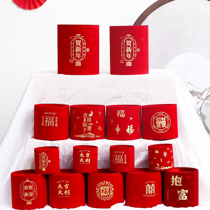 コケ米2024家に赤いベルベットの布を飾って二福桶年夜花発財果冬青生け花桶抱っこ桶