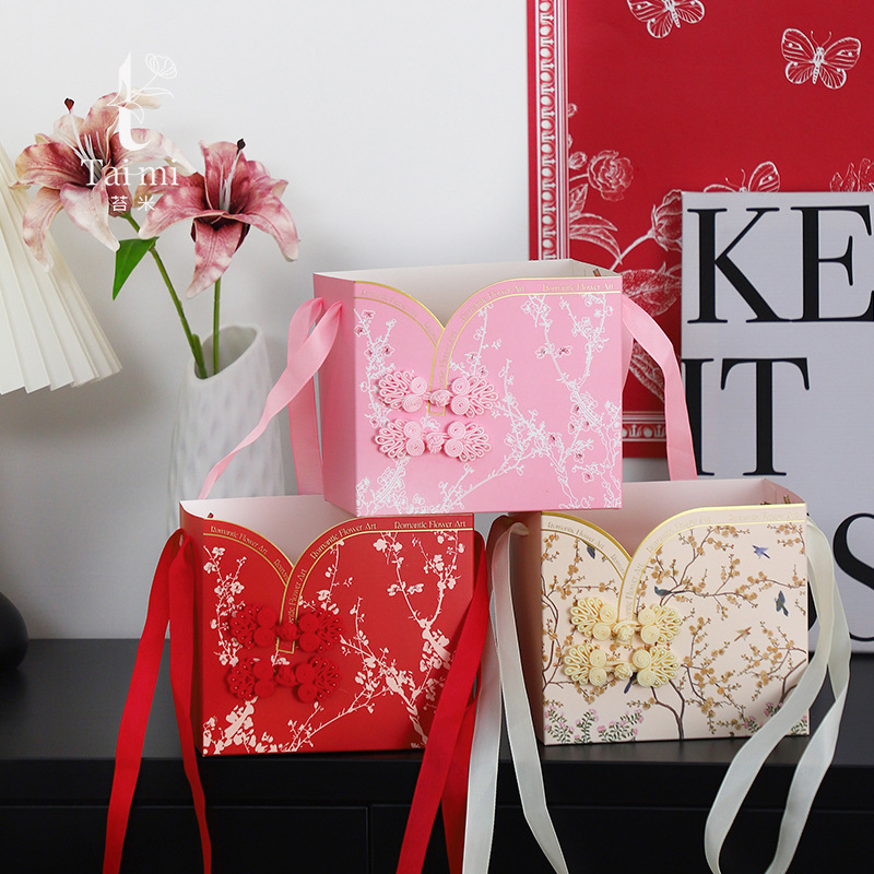 苔米38女神節中国式華韻手提げ箱新鮮な花束創意生け花箱花芸生花包装箱バッチ