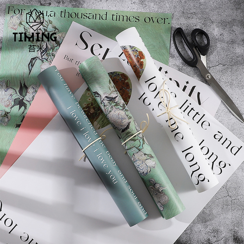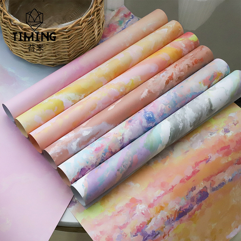 コケ米生花包装紙卸売りfrom art油絵シリーズ花束包花紙プレゼント包装材料