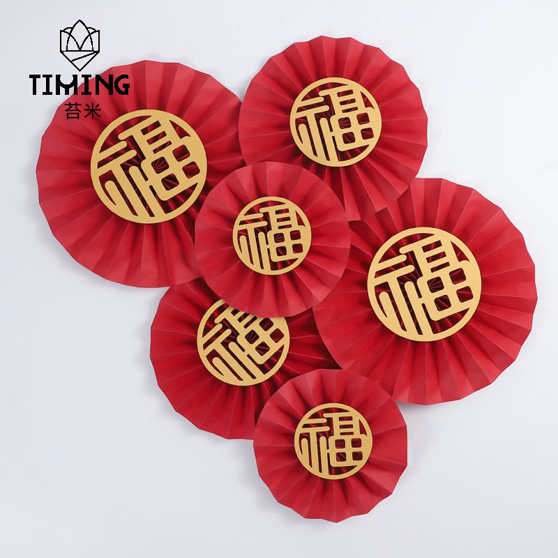 コケ米の春節のお正月の花の装飾の福の字の折り紙の扇風機の福の桶は材料の花芸の花屋の用品の材料を組み合わせて卸売りします。