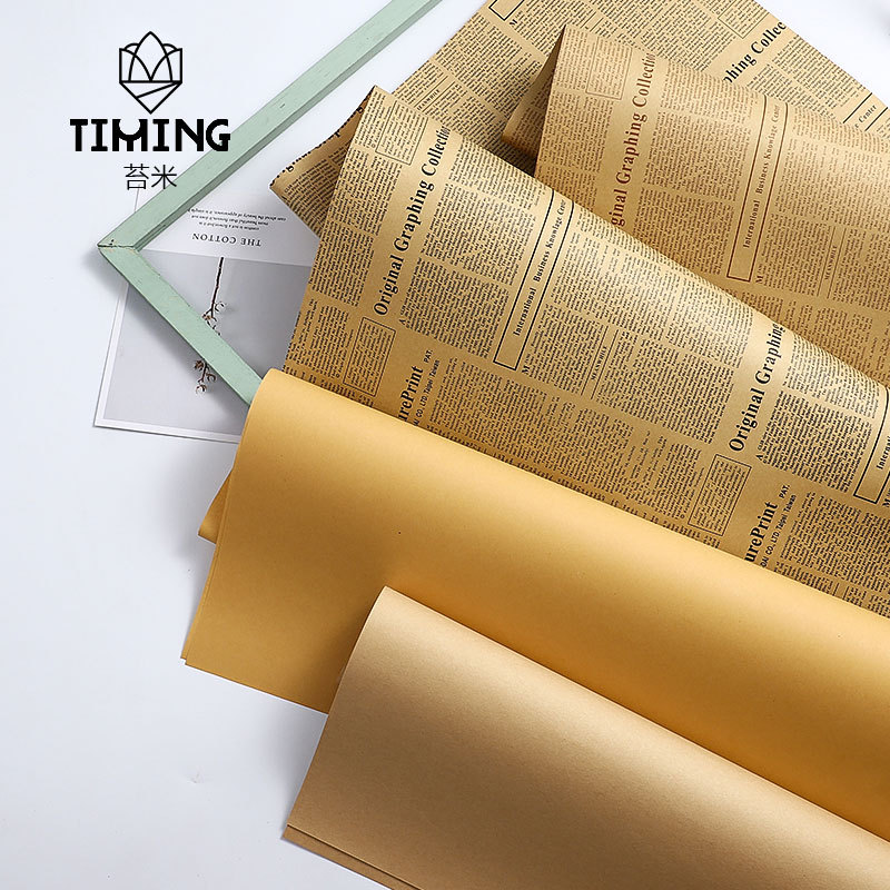 クラフト紙の英語の新聞の花束の包装紙の経典の復古の生花のバラの包装の材料の花屋の用品