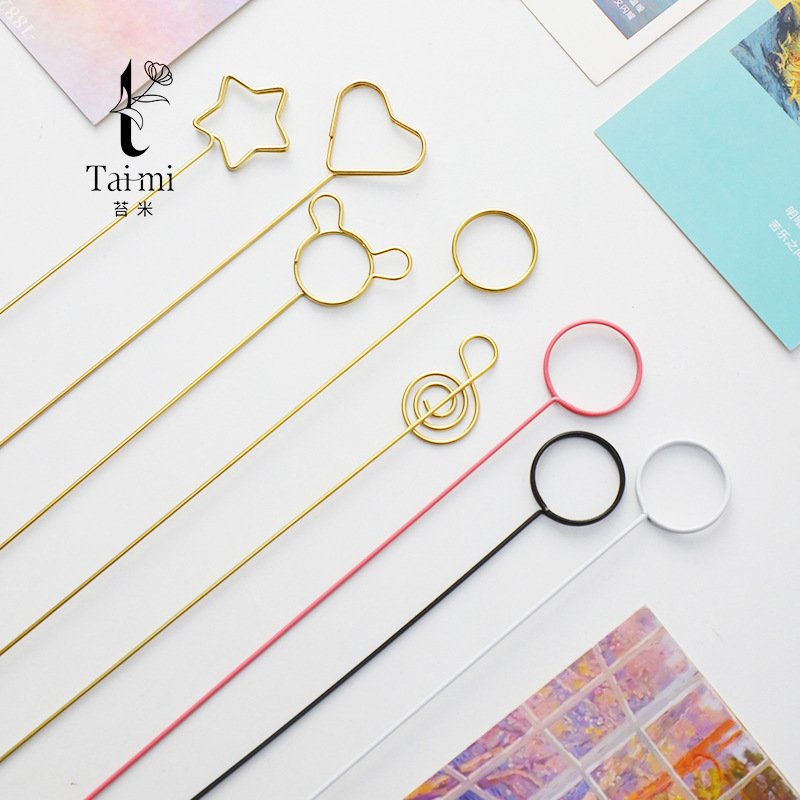 モスゴールドカードホルダーポールブーケグリーティングカード固定クリップフラワーアレンジメントフラワー包装資材フラワーショップ用品