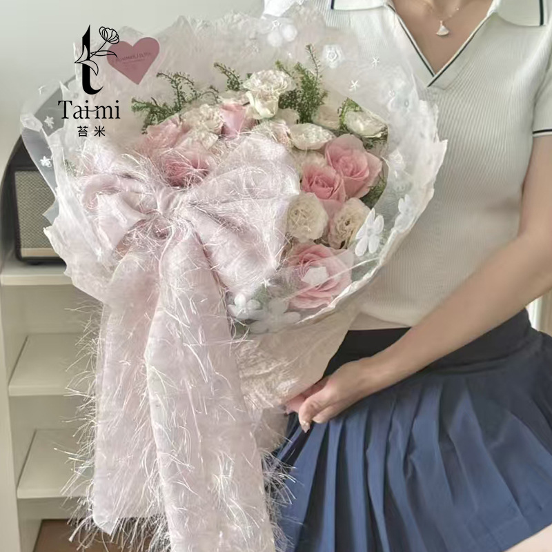 Taimi 520 バレンタインデーフレンチタッセルガーゼ生地ブーケ包装 diy リボン装飾花材材料
