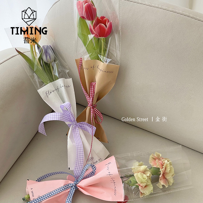 苔米3.8女神節シンプル透明単枝生花包装袋開窓直筒袋花束箱花芸材料