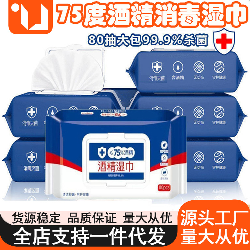 75度アルコールウェットティッシュ大量卸売80吸引独立包装使い捨て衛生清潔消毒ウェットティッシュ工場