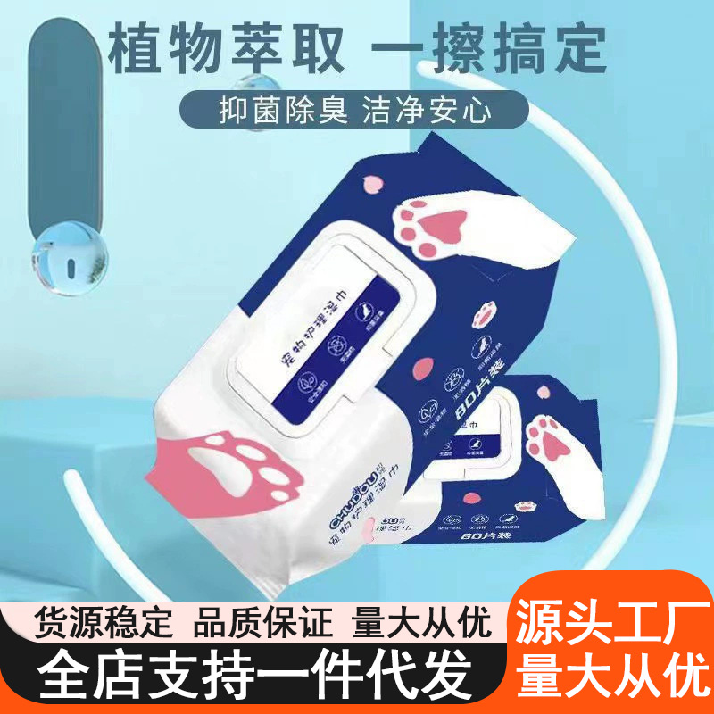 ペット清潔ウェットティッシュ猫犬殺菌消臭涙除去ウェットティッシュ足尻耳あご洗浄フリー