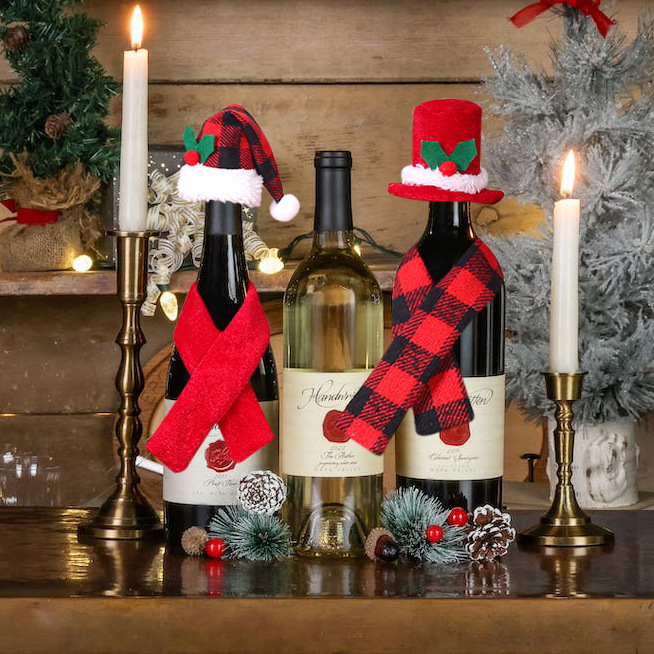 越境クリスマス創意ワインボトルカバーマフラー帽子二点セットホテルレストランワイン装飾用品
