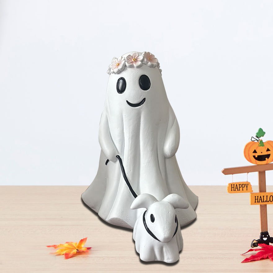 ハロウィン樹脂ゴースト犬の散歩の装飾品家の庭の装飾ゴーストホラー装飾ゴースト犬の装飾品